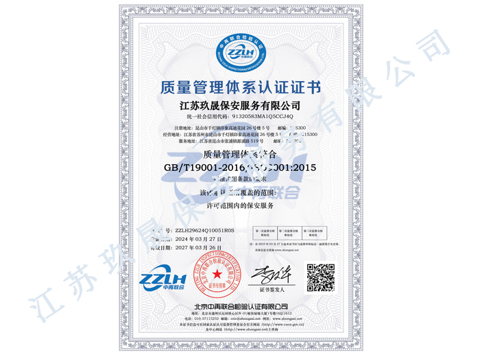 江蘇玖晟保安服務有限公司成立于江蘇省昆山市千燈鎮(zhèn)。注冊資金:5000萬,是擁有省公安廳頒發(fā)的保安服務許可證的企業(yè)【蘇公保服20170046】,也是昆山市保安協會常務理事單位。